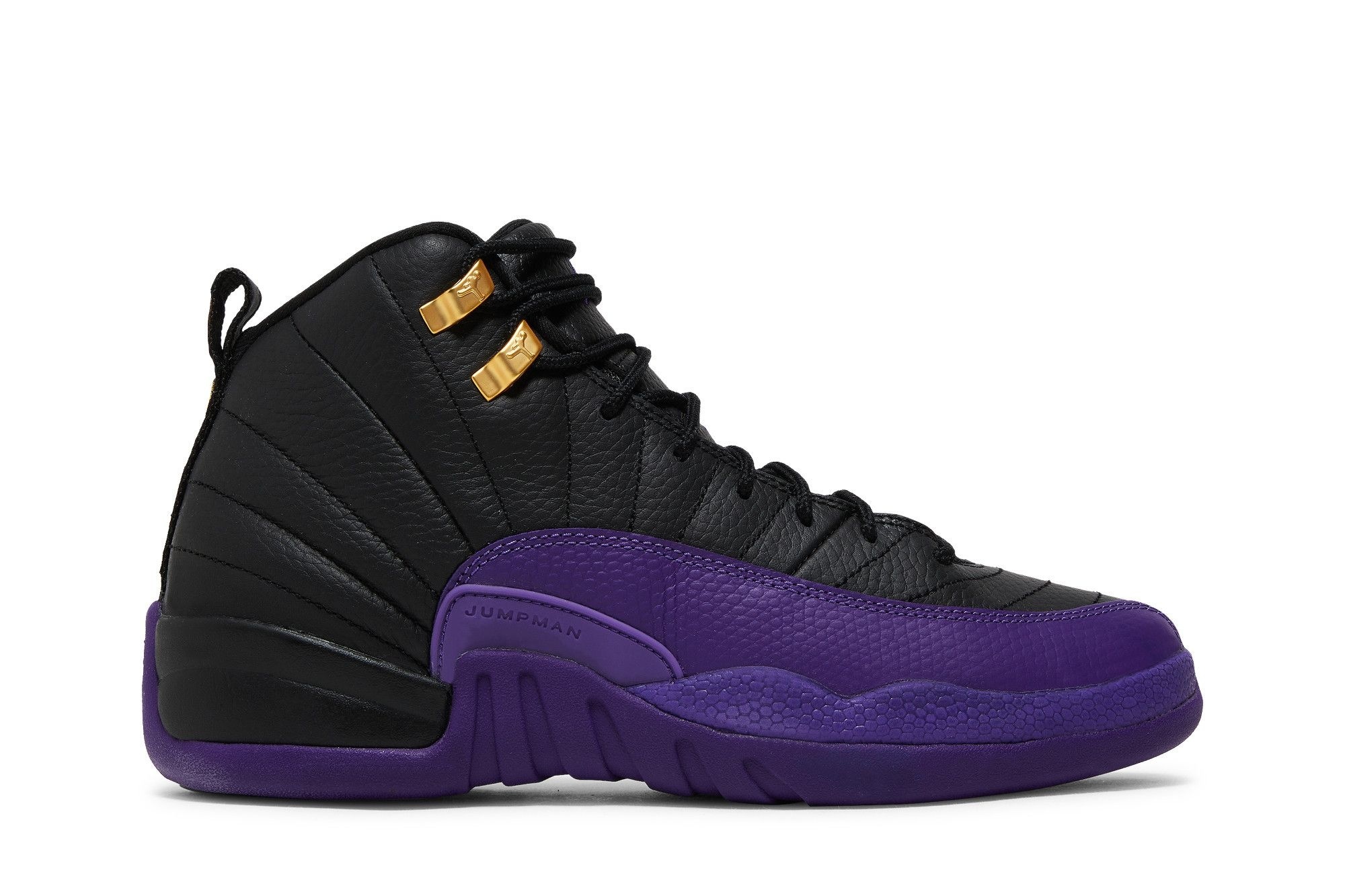 Air Jordan 12 Retro Field Purple (GS) sneakers. Stylish black & purple design. Genuine & synthetic leather upper, foam midsole, rubber outsole & Air cushioning. MPN: 153265-057. Grade school sizing.