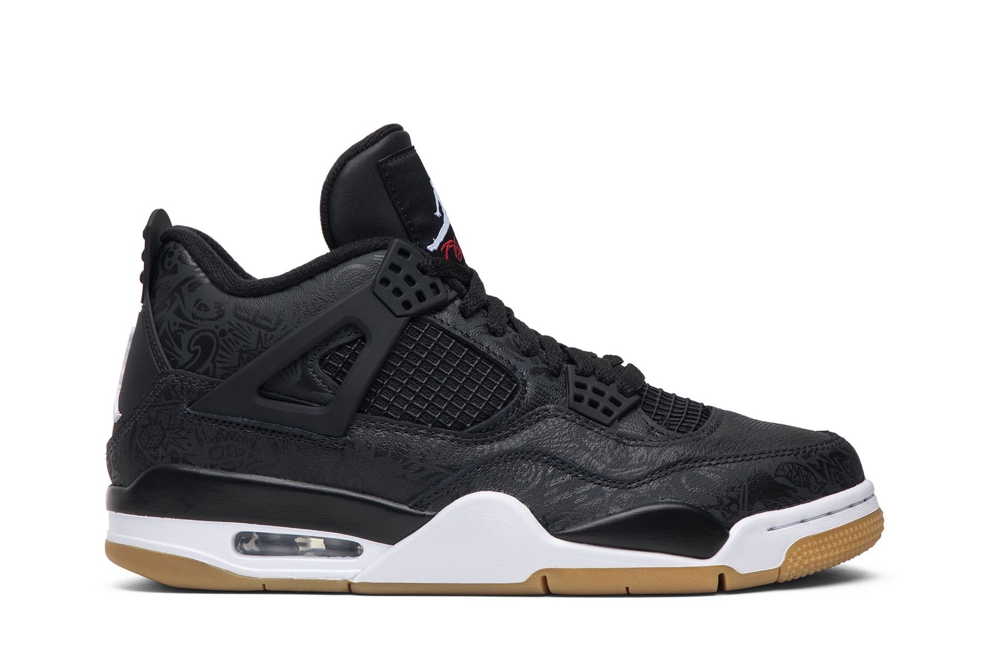 Jordan 4 Retro Laser Black Gum (CI1184-001) men’s sneakers. Iconic black leather upper, white midsole, and gum outsole. Released January 2019. A timeless classic for sneakerheads. CI1184-001.
