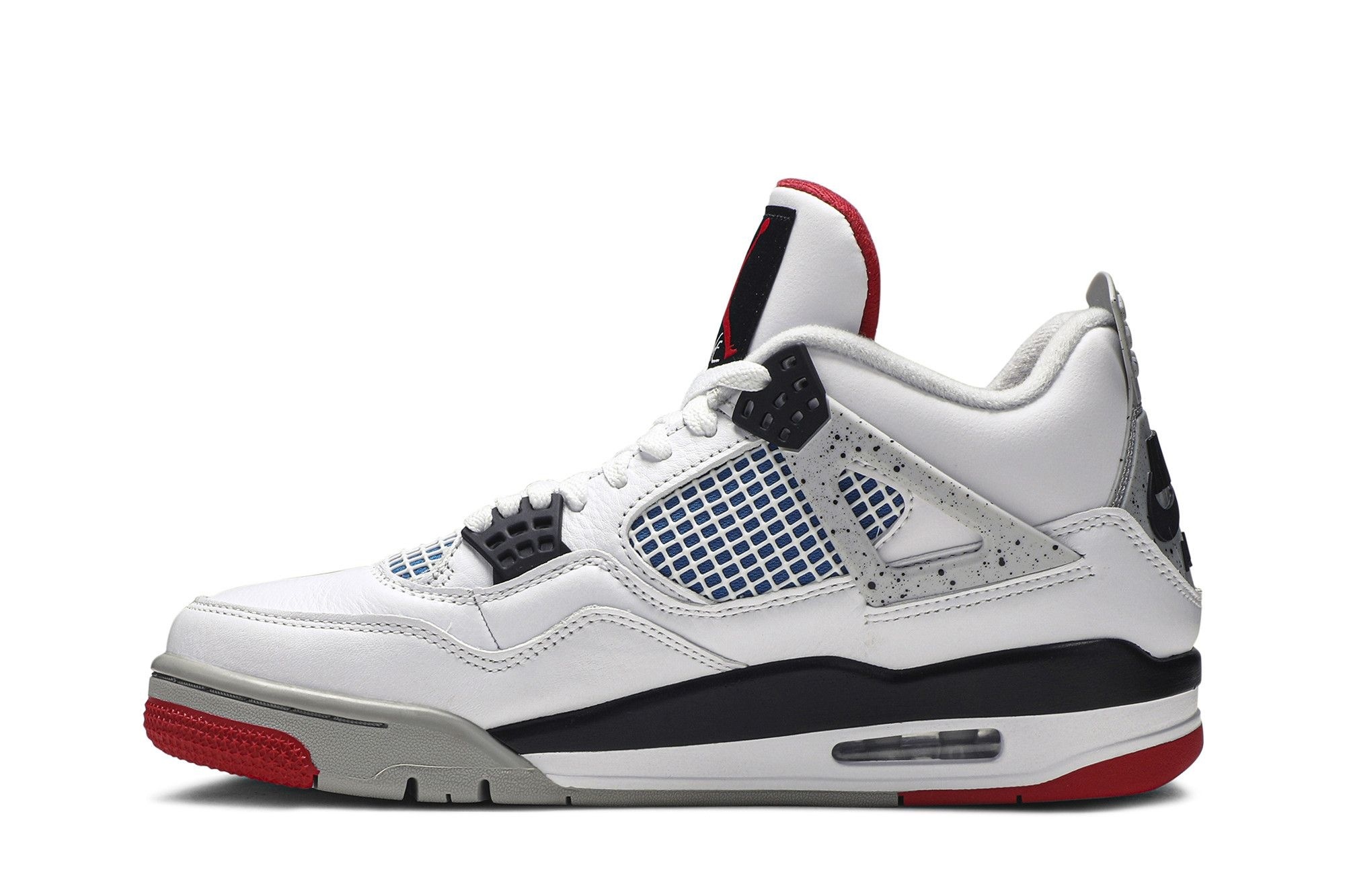 Jordan Brand Air Jordan 4 Retro What The (CI1184-146). A collector’s edition featuring a unique mash-up of iconic Air Jordan 4 colourways. Premium white leather with Fire Red, Military Blue, Black & Cement Grey details. Released November 2019.