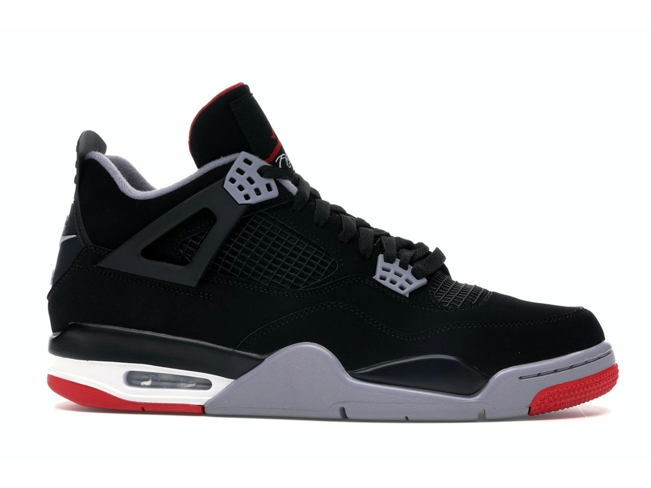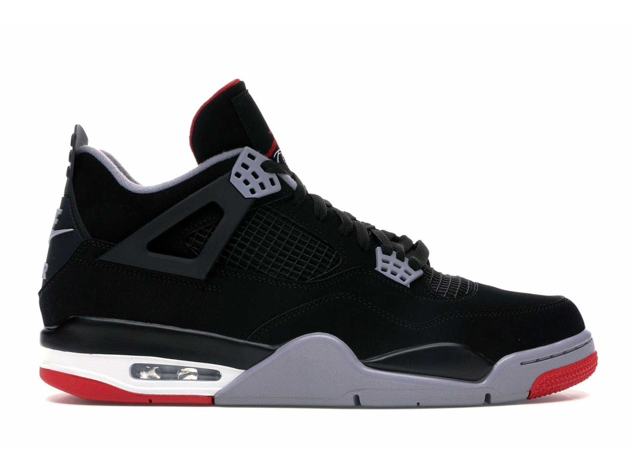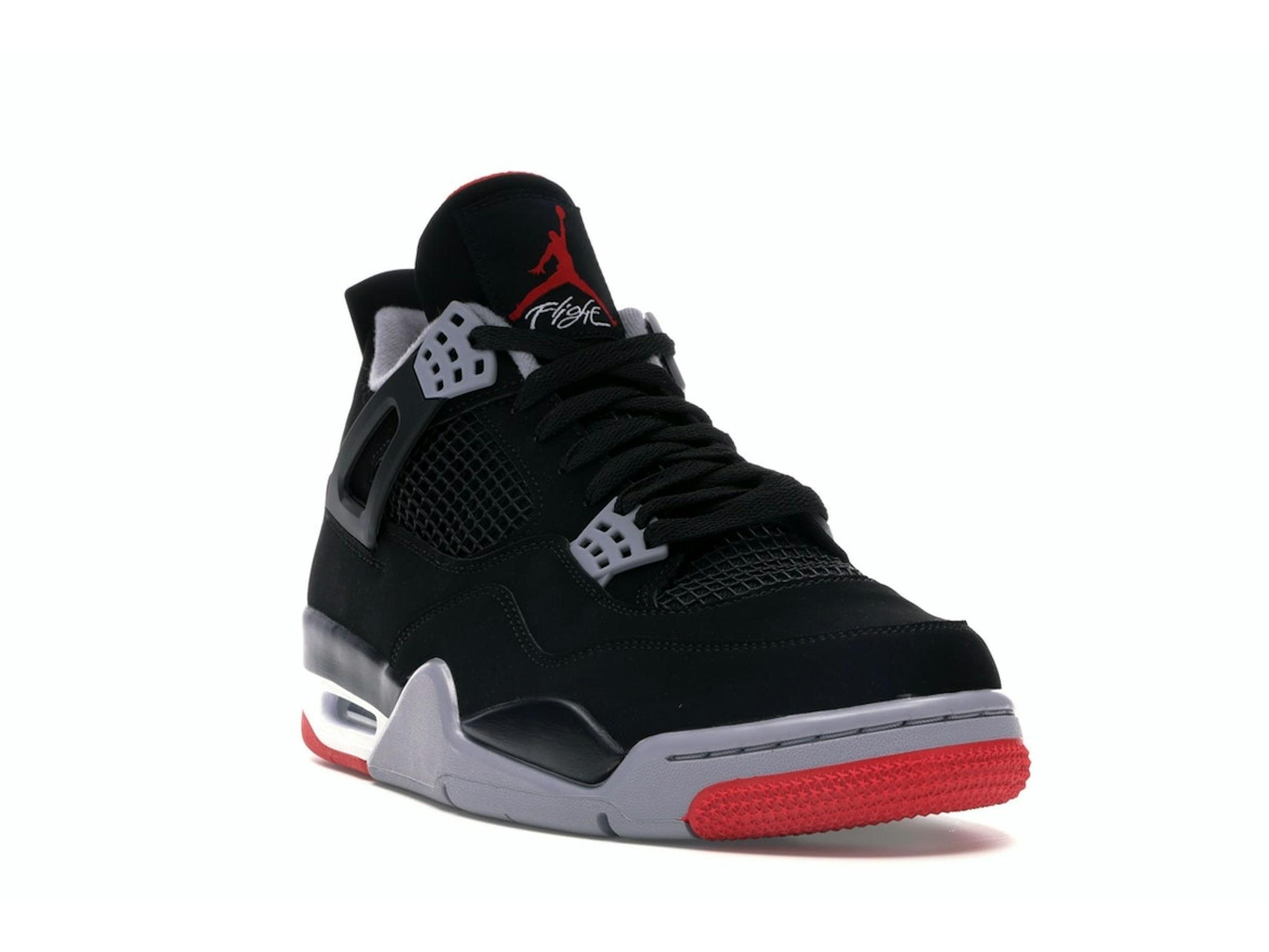 Jordan 4 Retro Bred 2019 (MPN: 308497-060) sneakers by Jordan. Black, Cement Grey & Fire Red colorway. A lifestyle icon.