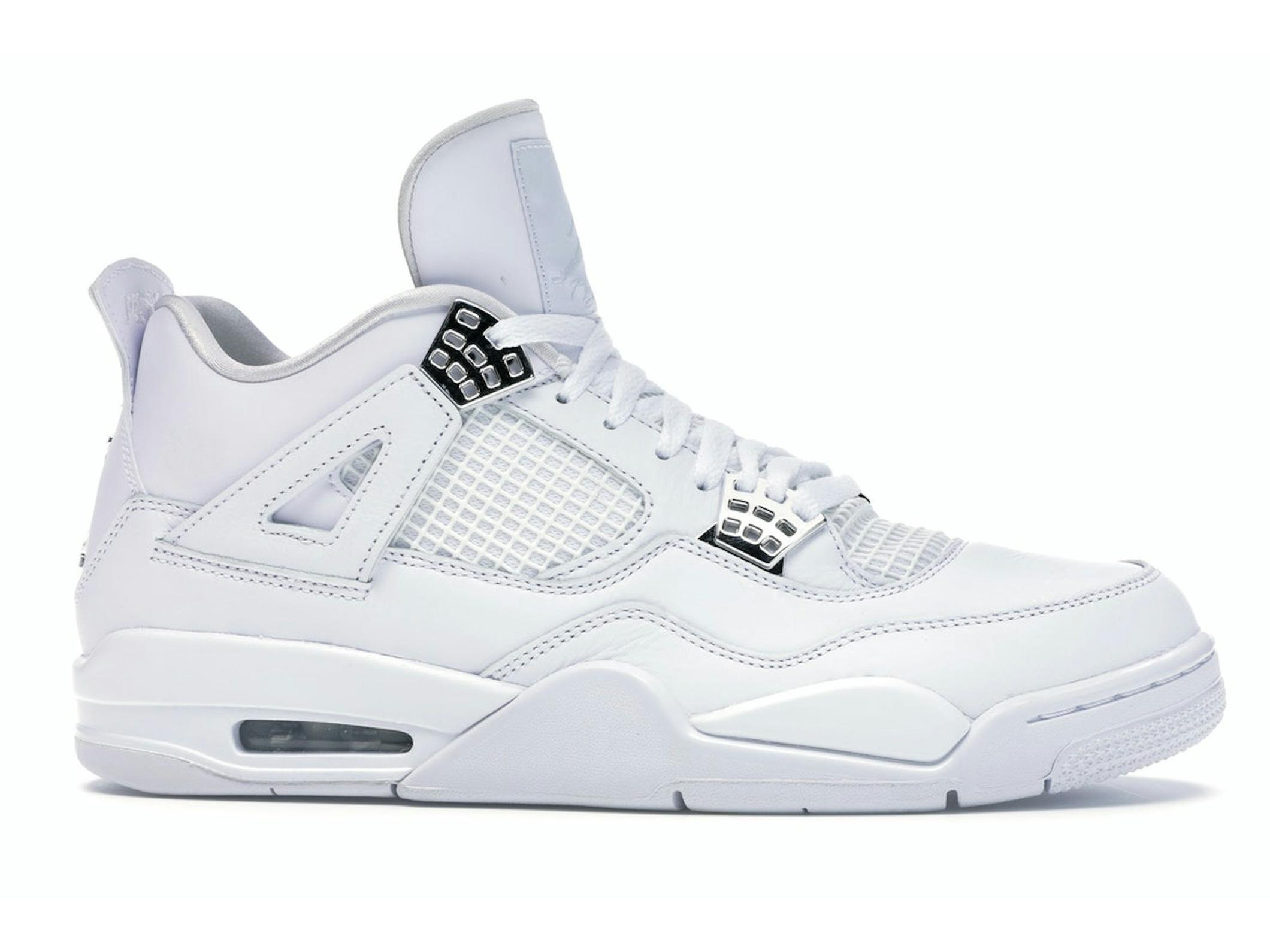 Jordan 4 Retro Pure Money (2017) Brand: Jordan. MPN: 308497-100. Classic white leather sneaker with silver accents. A stylish, must-have for any collection.