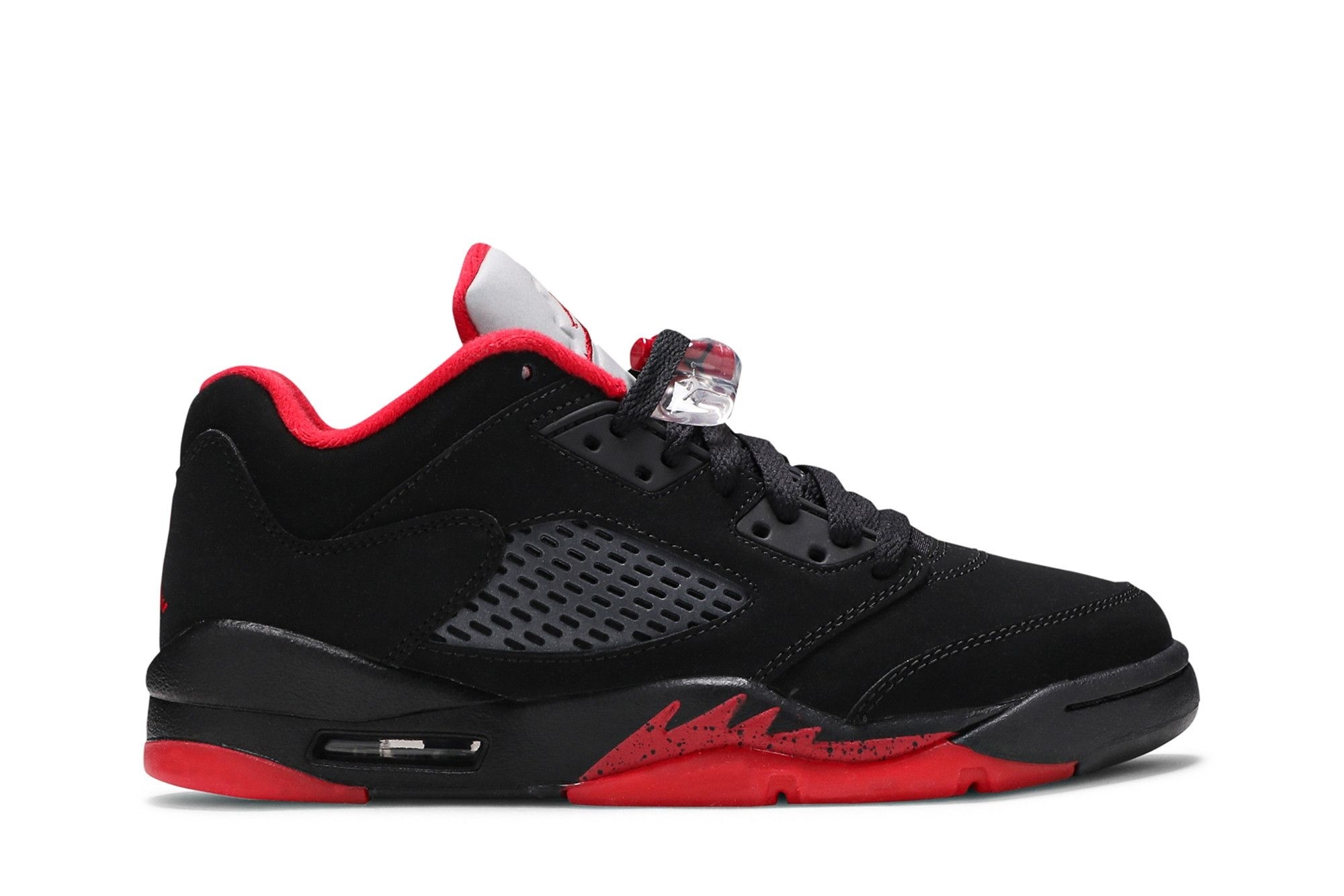 Jordan 5 Retro Low Alternate 90 (GS) in Black/Gym Red. Iconic 2016 release, featuring a classic colourway and Grade School sizing. MPN: 314338-001. Timeless design & comfort.