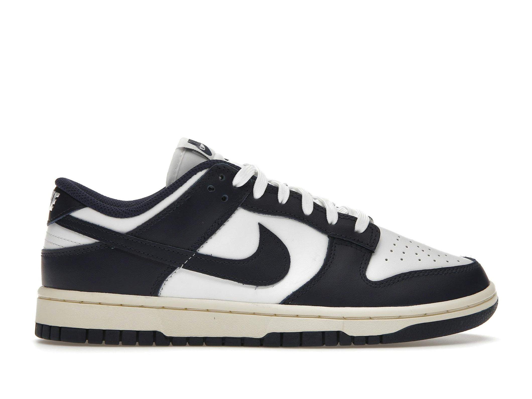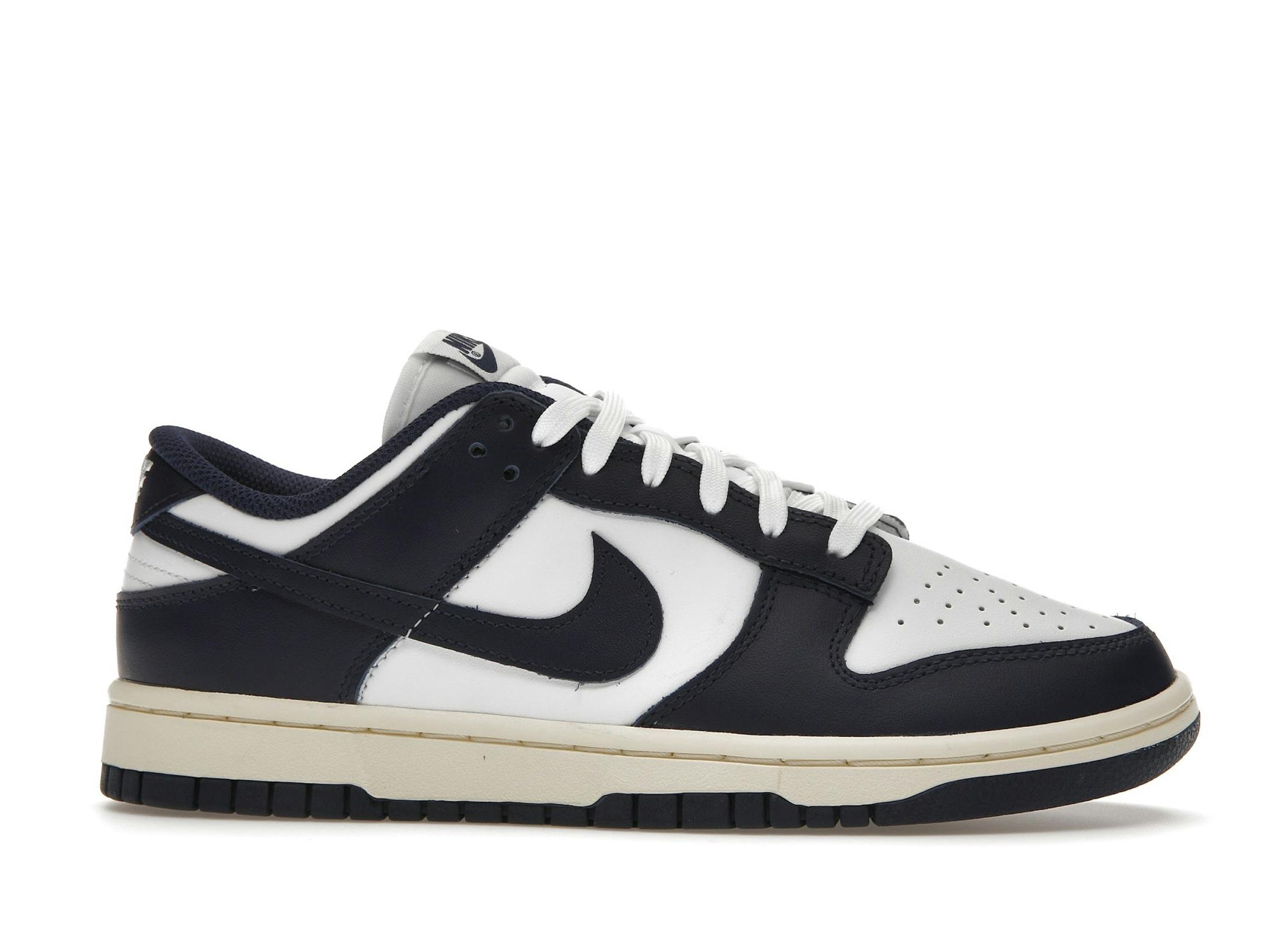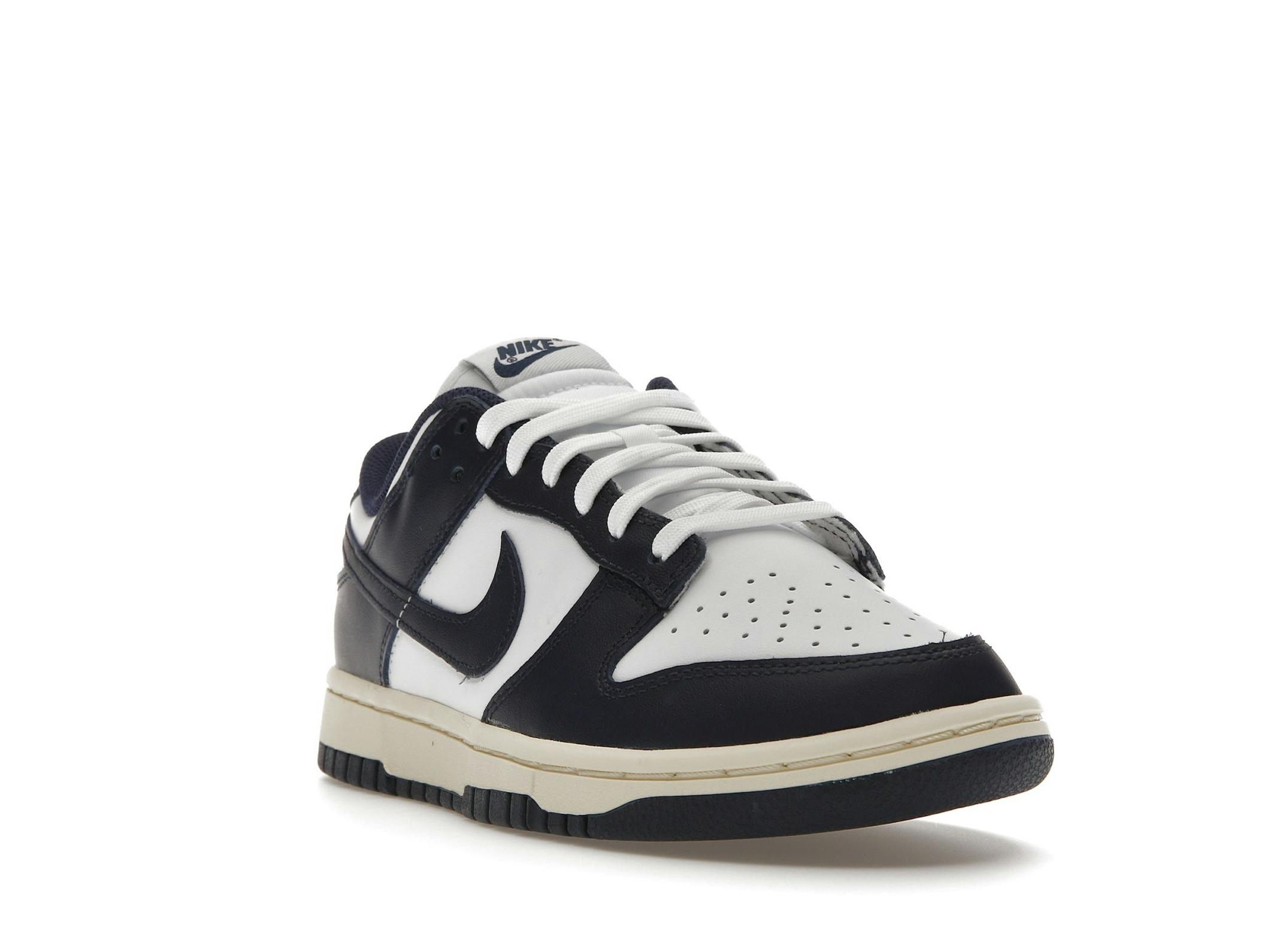 Dunk Low Vintage Navy Womens DD1503-115. Brand: Nike. MPN: DD1503-115. Classic style with white leather and navy accents. Comfortable and iconic sneakers.