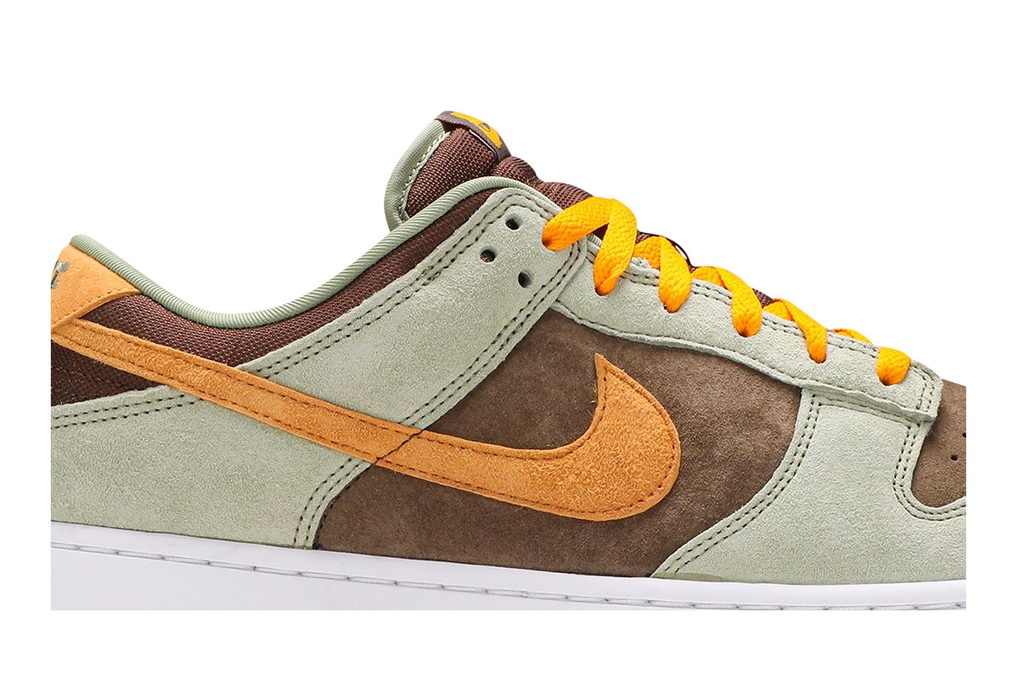 Dunk Low Dusty Olive (DH5360-300) sneakers. Retro design with dusty olive suede, brown accents & Pro Gold details. Comfortable & versatile for everyday style. A must-have for sneakerheads.
