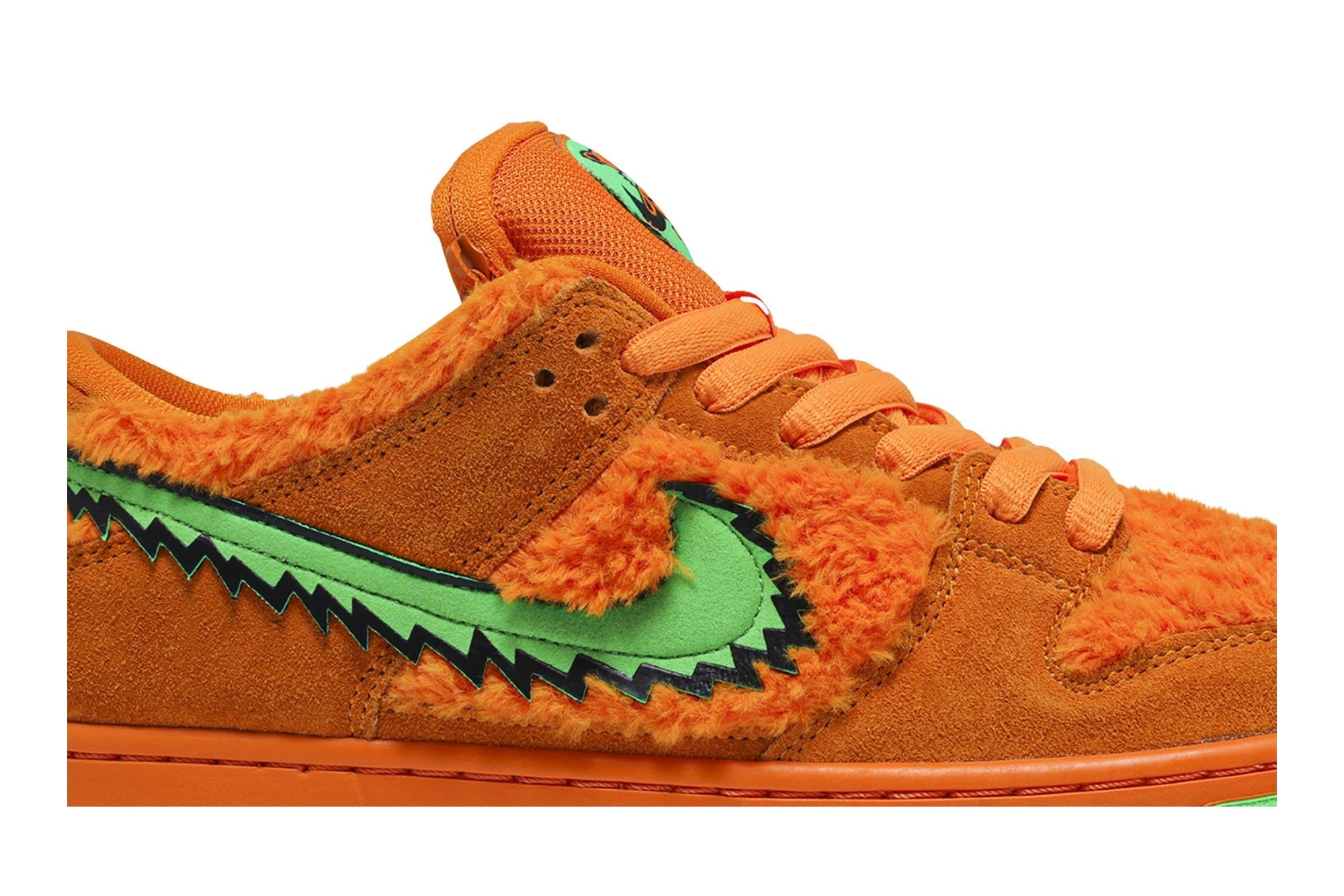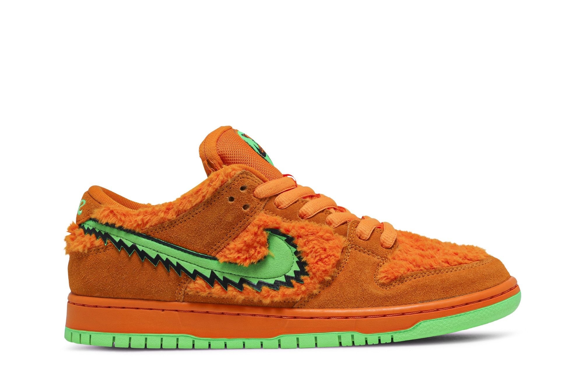 SB Dunk Low Grateful Dead Bears Orange (CJ5378-800). Limited edition collab featuring iconic Grateful Dead bear design. Orange faux fur upper, suede overlays, hidden tongue pocket. Skate-ready comfort & collectible style.
