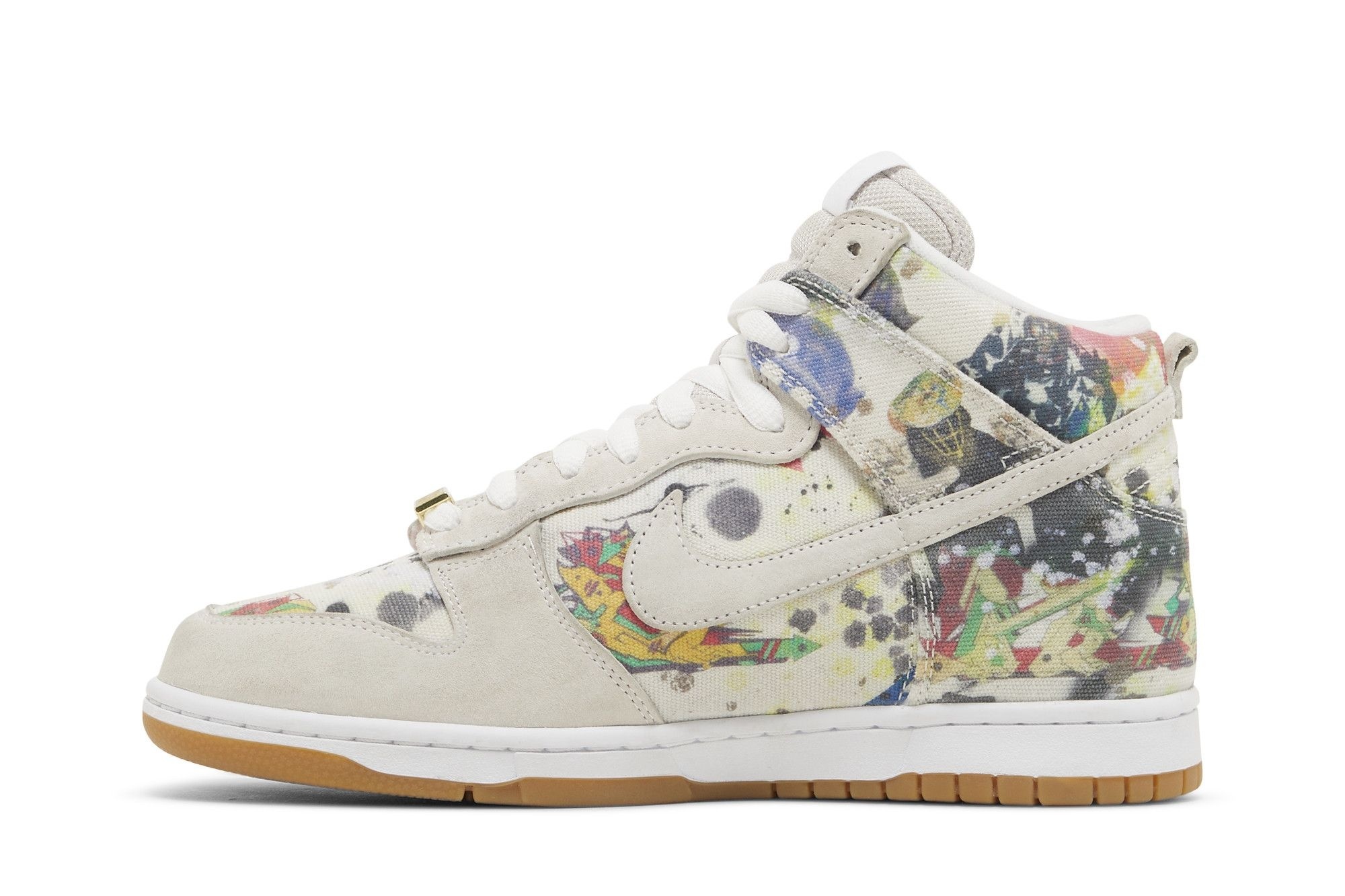 SB Dunk High Supreme Rammellzee (FD8779-100). Limited edition, white/multi colour sneakers. Supreme x Rammellzee collaboration. Iconic artwork & classic Dunk High silhouette. A must-have for collectors.