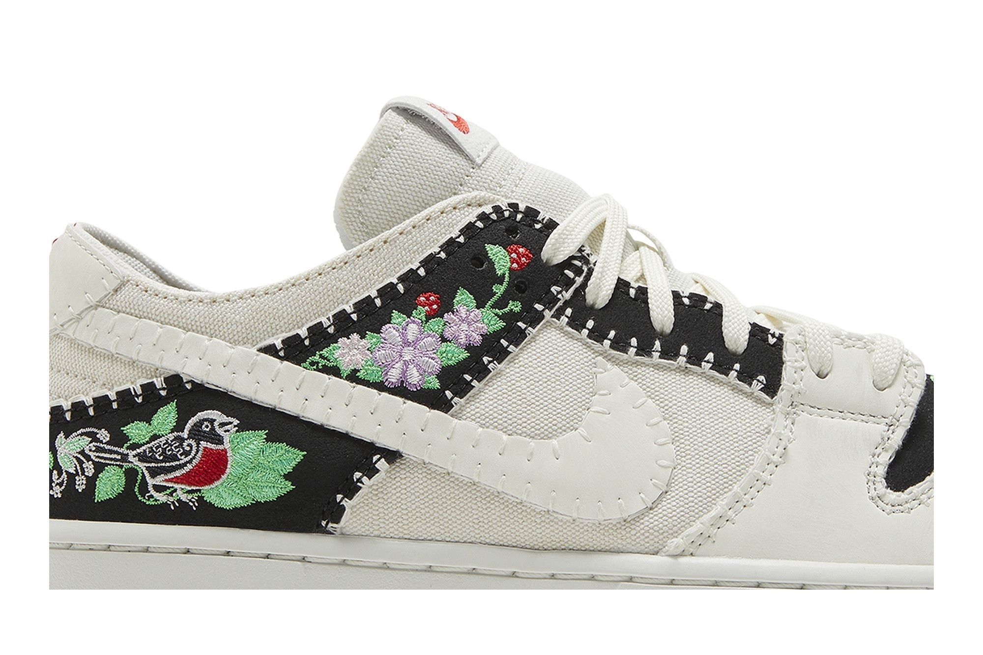 SB Dunk Low Decon N7 Black Sail (FD6951-300). Limited edition sneakers celebrating Native American heritage. Mixed materials, embroidered florals, & deconstructed design. A stylish & meaningful choice.