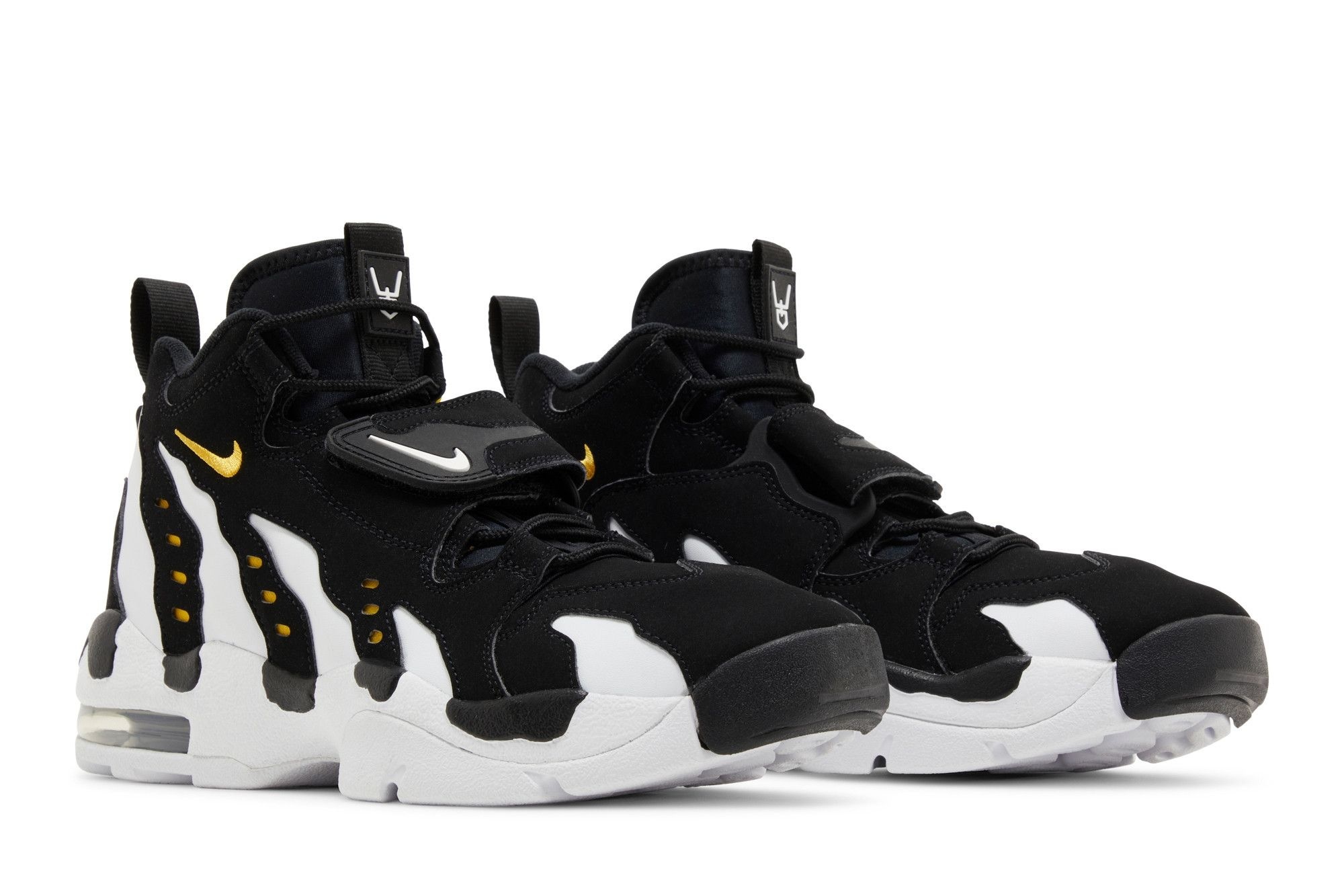Details like the black toe cap, black strap with white swoosh, and small yellow swooshes on the ankle add to the shoe’s intricate design. The iconic Air DT Max unit in the heel provides cushioning and support, ensuring all-day comfort. The wavy white outsole completes the look, offering both style and durability. The Air DT Max ’96 perfectly balances retro aesthetics with modern performance, making it a must-have for sneakerheads and fashion enthusiasts alike. This is a shoe that will turn heads.