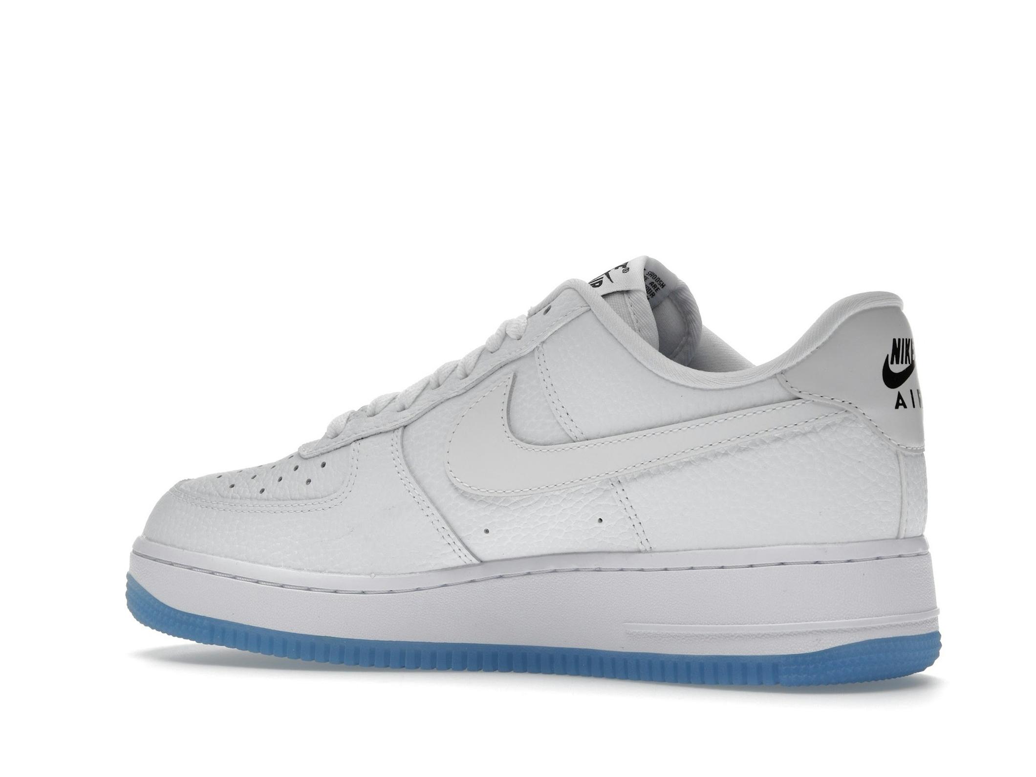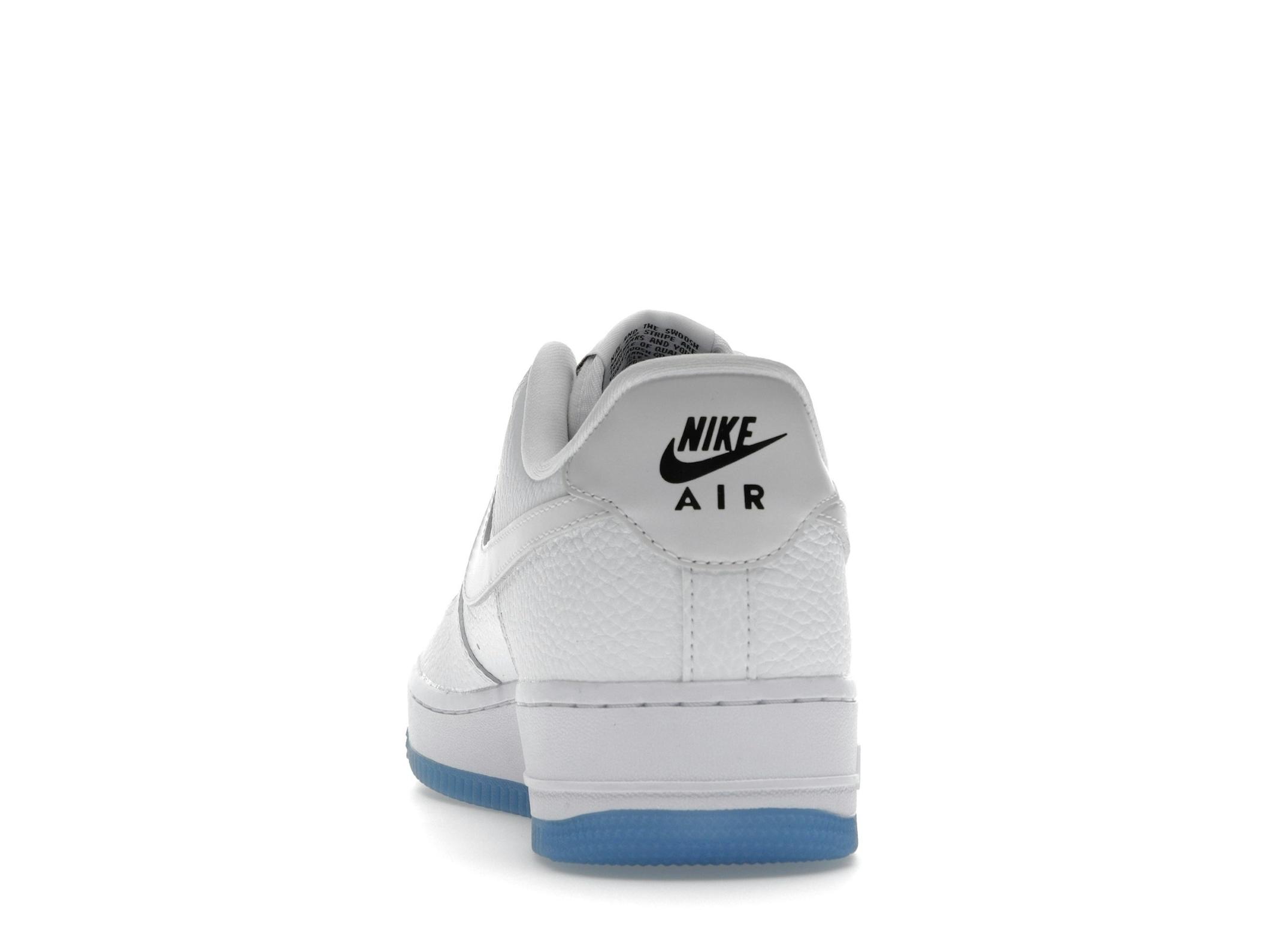 The shoe features a pristine all-white tumbled leather upper, providing a premium look and feel. But the real magic lies in the UV Reactive Swooshes and heel tabs. When exposed to sunlight, these elements transform, revealing vibrant colors that add a unique and playful twist to your footwear.
