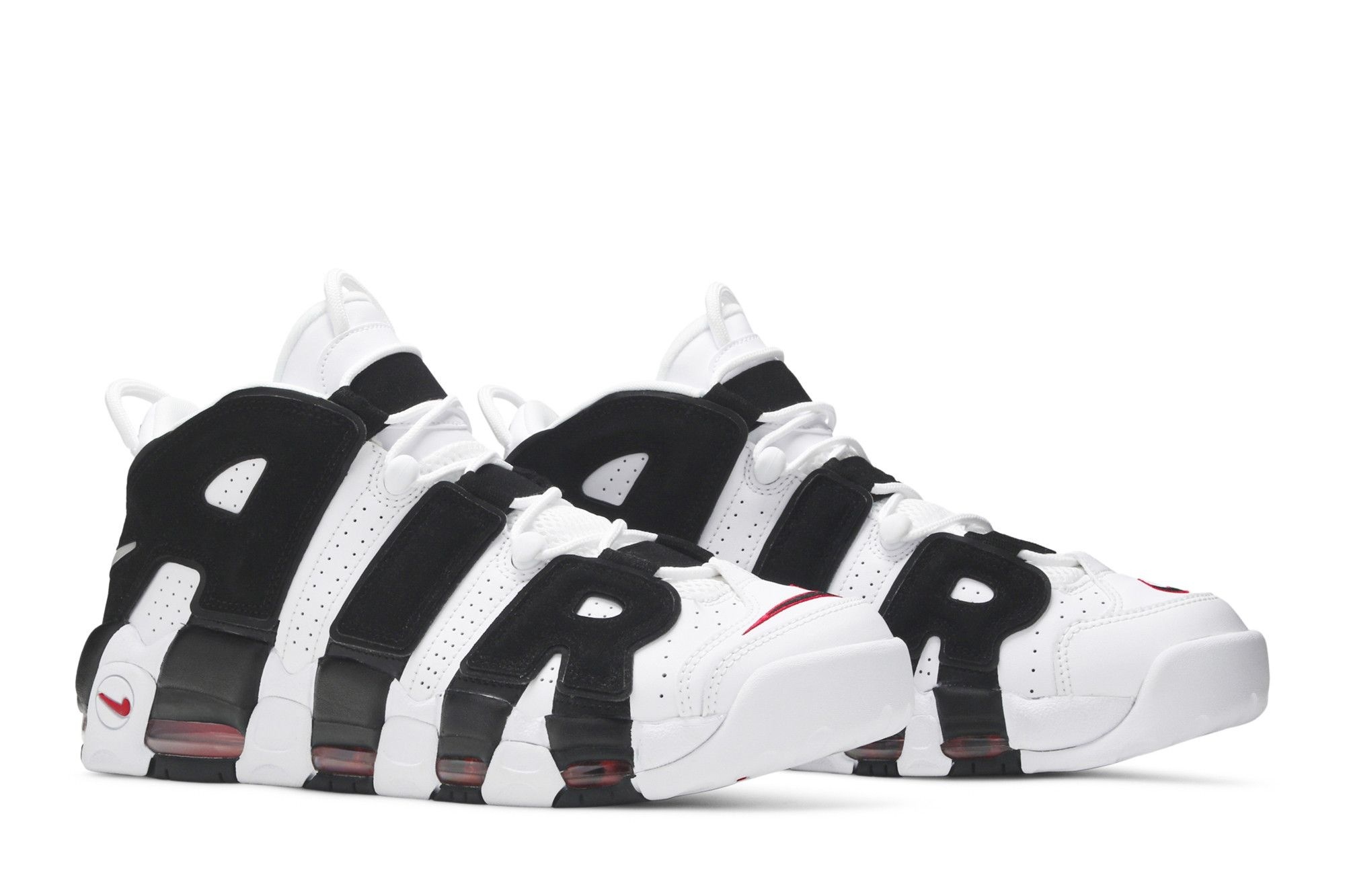 Step back in time with the iconic Air More Uptempo Scottie Pippen sneakers. These legendary kicks boast a classic colourway – White/Black-University Red – and feature a premium leather and nubuck upper, ensuring both style and durability. The instantly recognisable oversized “AIR” lettering dominates the design, a bold statement that’s synonymous with this timeless silhouette.