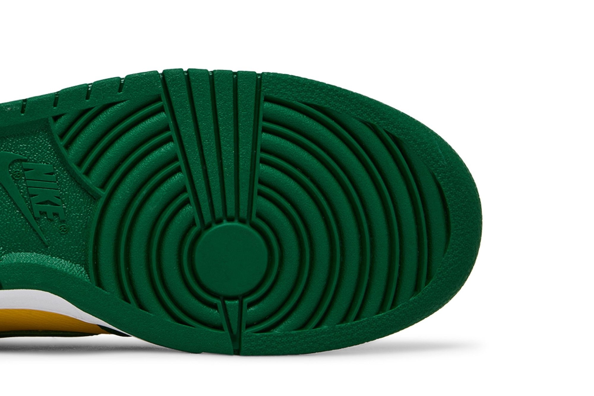 The Dunk Low Brazil features a premium leather upper in a captivating Varsity Maize yellow. Vibrant Pine Green overlays provide a stunning contrast, while crisp white accents on the midsole and branding add a clean finish. The combination of these colours creates a fresh, bold aesthetic that’s both playful and sophisticated.