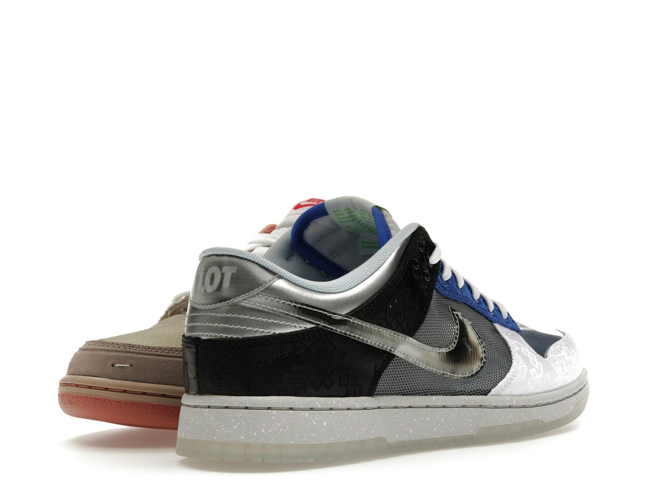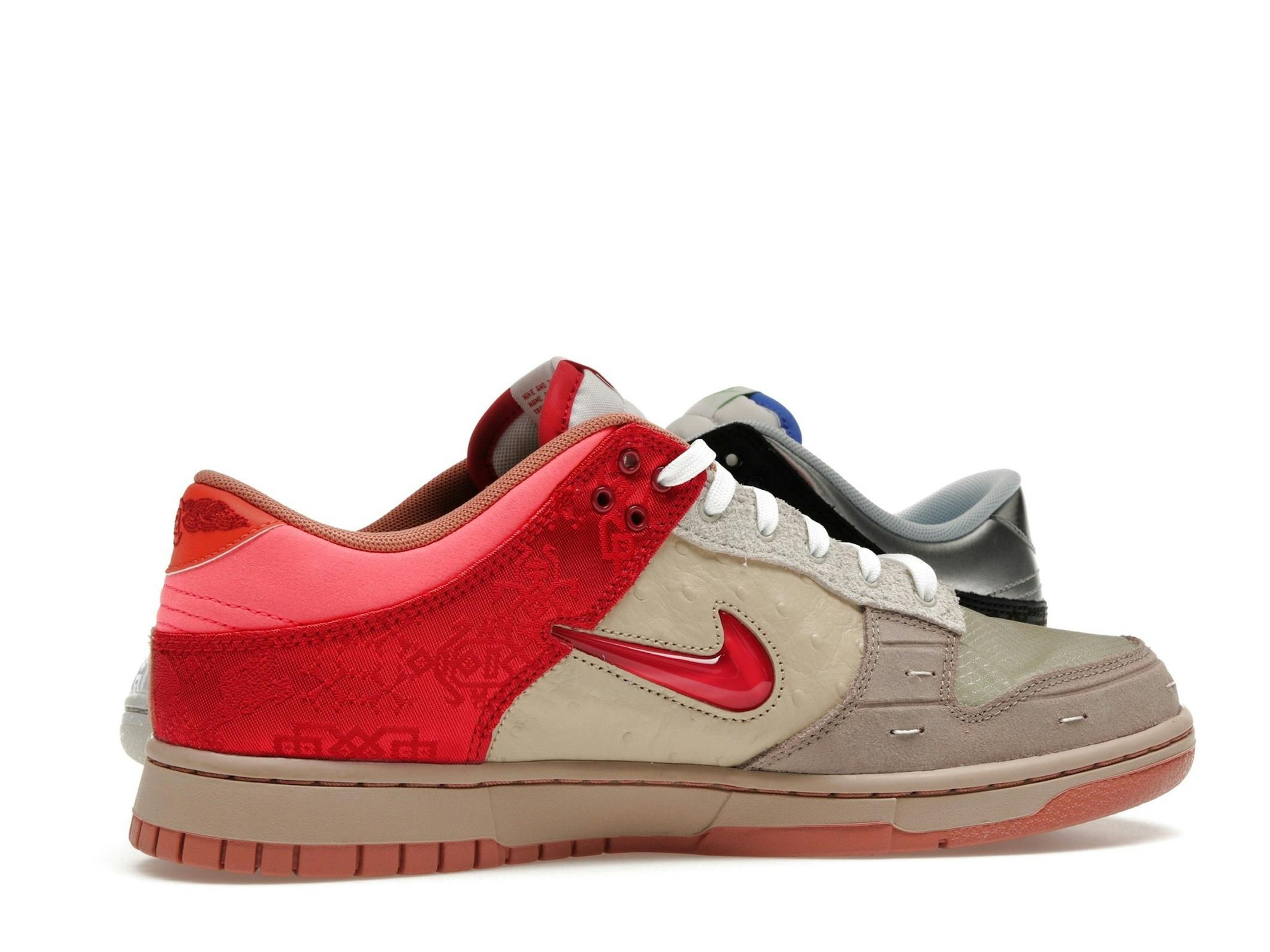 This special edition Dunk Low SP features a creative mix of materials and a stunning collage of colors. The “What The CLOT” design incorporates various textiles and patterns, resulting in a visually dynamic and truly one-of-a-kind sneaker. The iconic Swoosh provides a familiar touch amidst the bold and eclectic colorway.