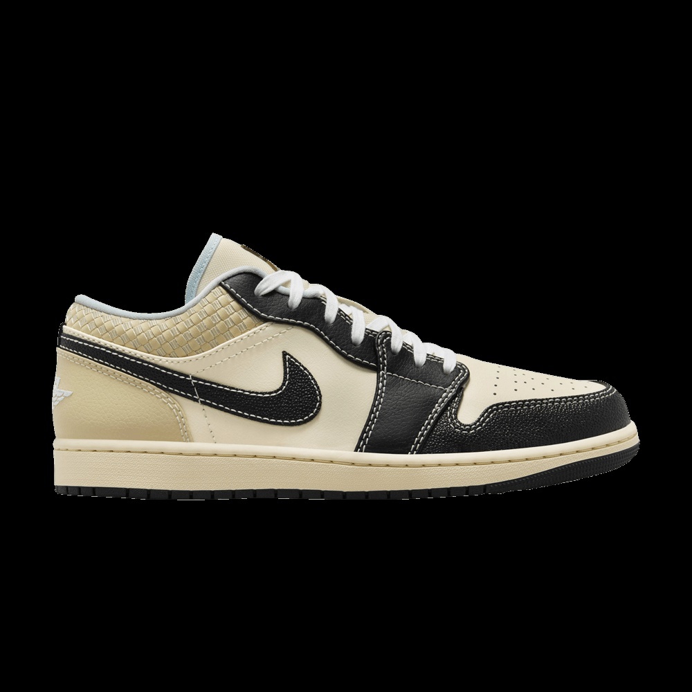 Experience effortless style with the Jordan 1 Low SE Coconut Milk Black Muslin sneakers. These versatile kicks boast a clean and sophisticated design, perfect for everyday wear or adding a touch of understated cool to any outfit. The creamy “Coconut Milk” base provides a neutral canvas, beautifully complemented by subtle black muslin overlays and pops of Team Gold and Glacier Blue for a refined accent.