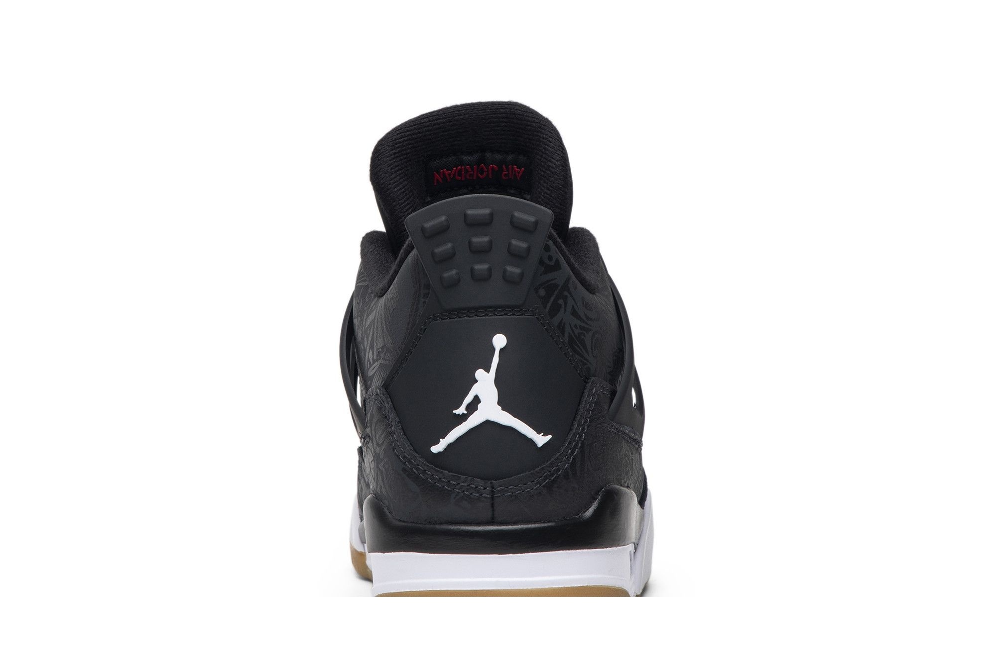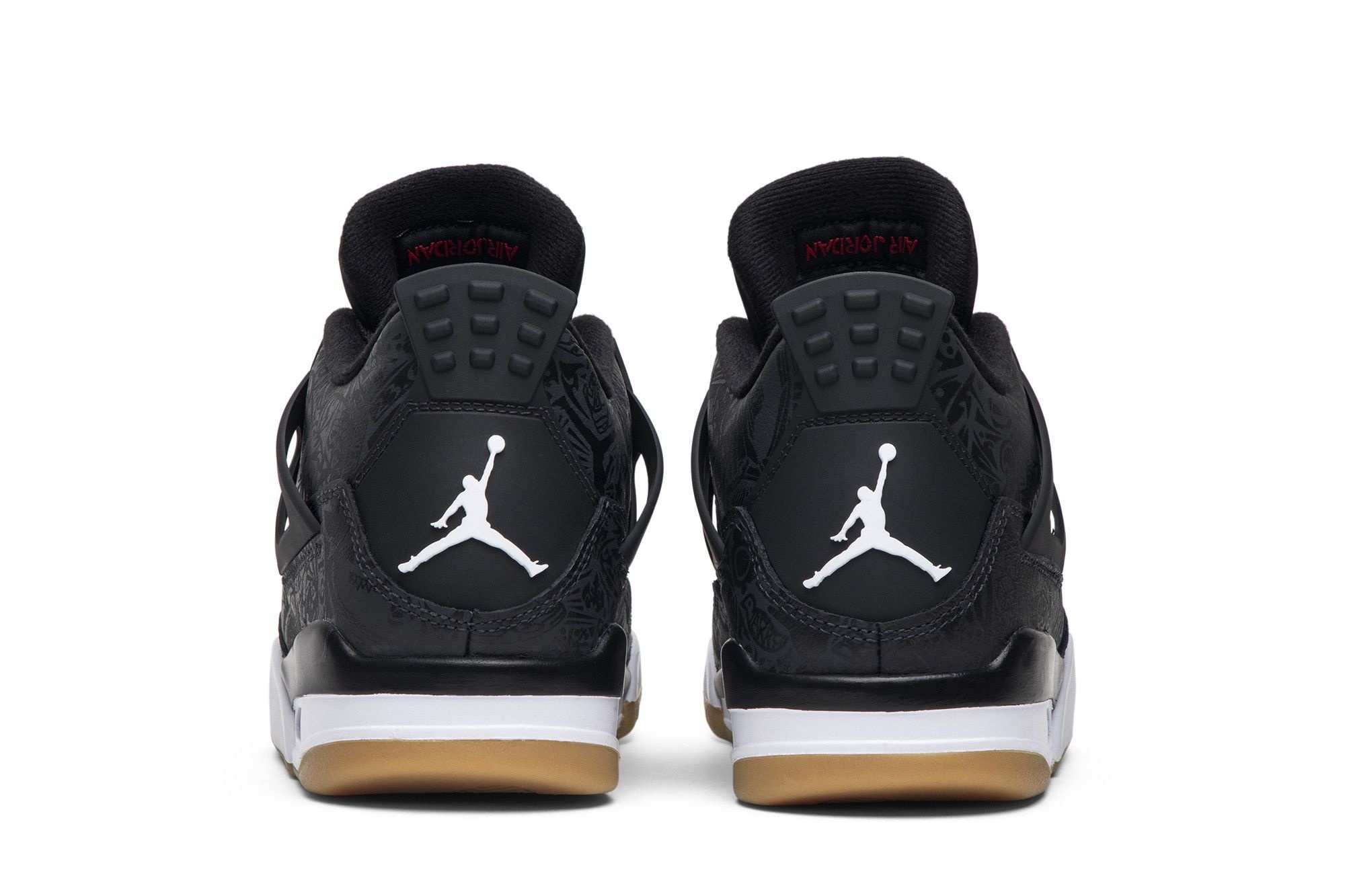 Jordan 4 Retro Laser Black Gum (CI1184-001) men’s sneakers. Iconic black leather upper, white midsole, and gum outsole. Released January 2019. A timeless classic for sneakerheads. CI1184-001.