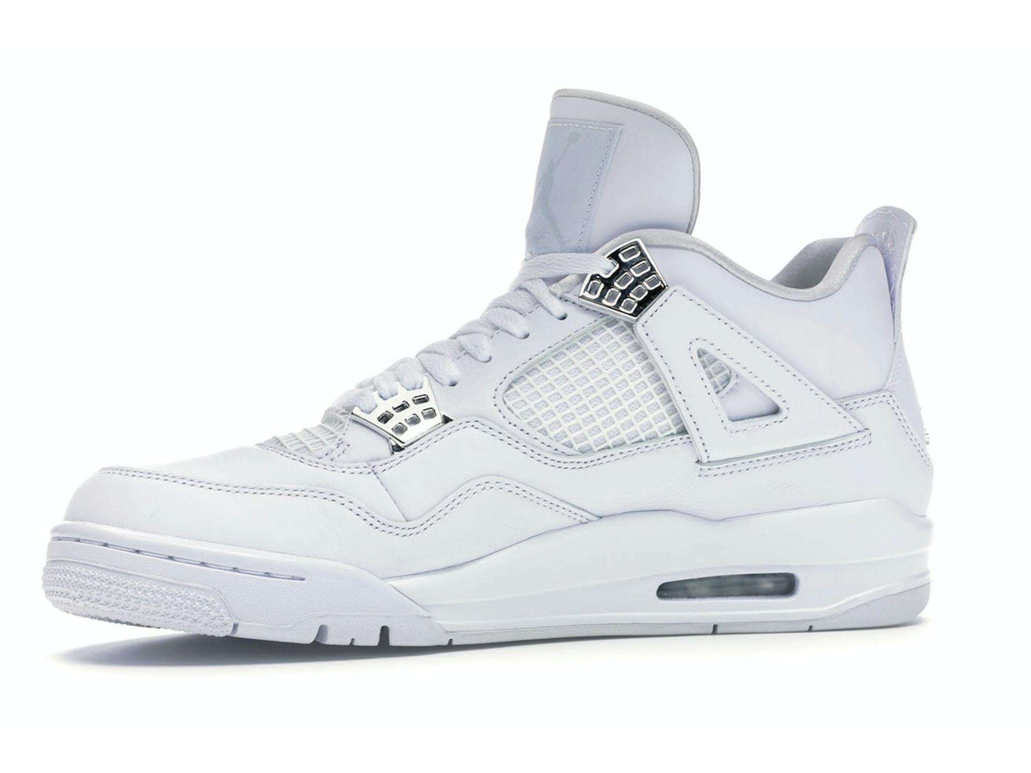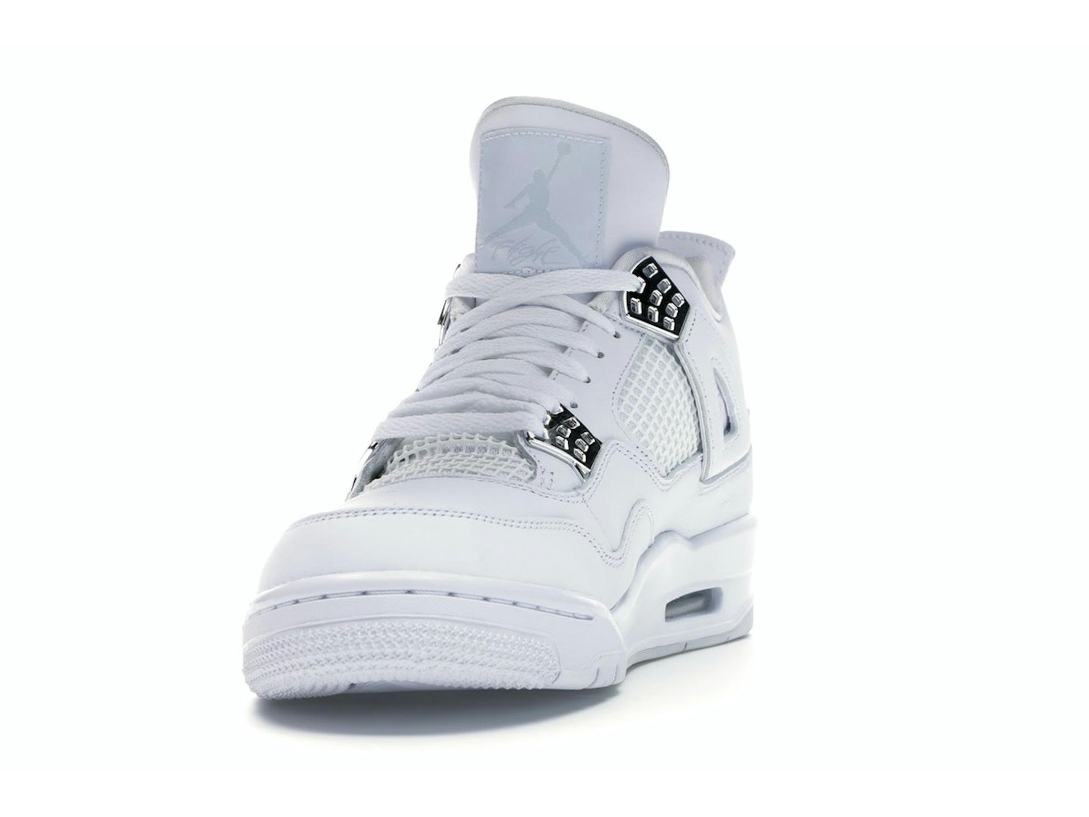Step into timeless style with the Jordan 4 Retro Pure Money (2017). This iconic sneaker boasts a clean and sophisticated aesthetic, perfect for elevating your everyday look. Released in May 2017, this iteration of the Air Jordan 4 features a pristine white leather upper, exuding a sense of luxury and refinement.