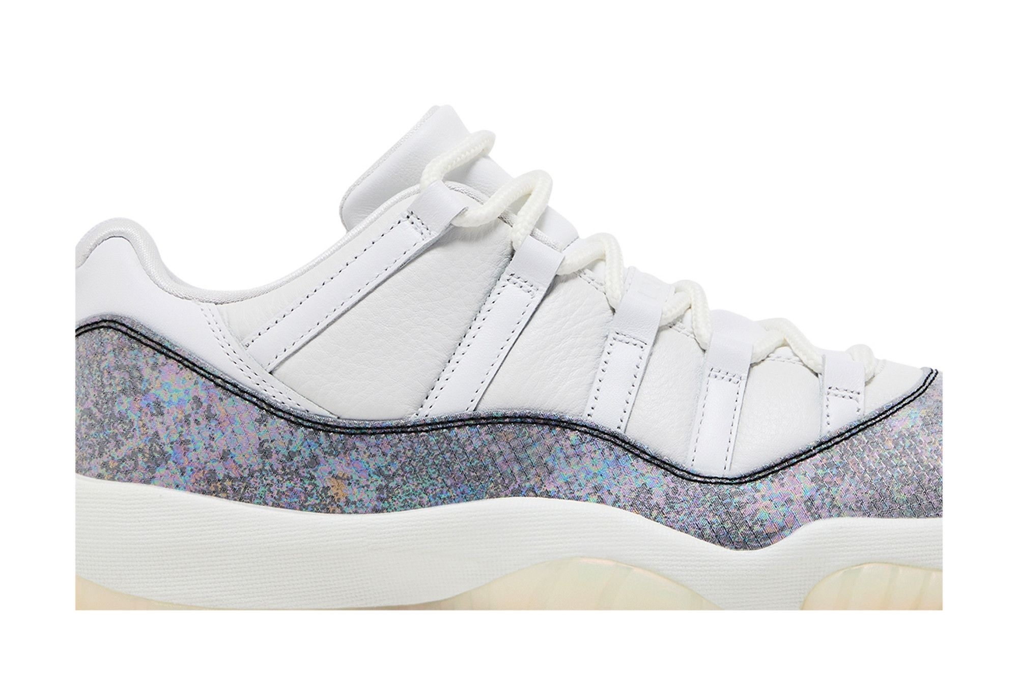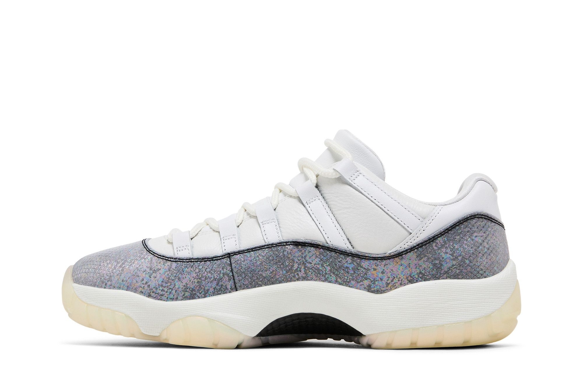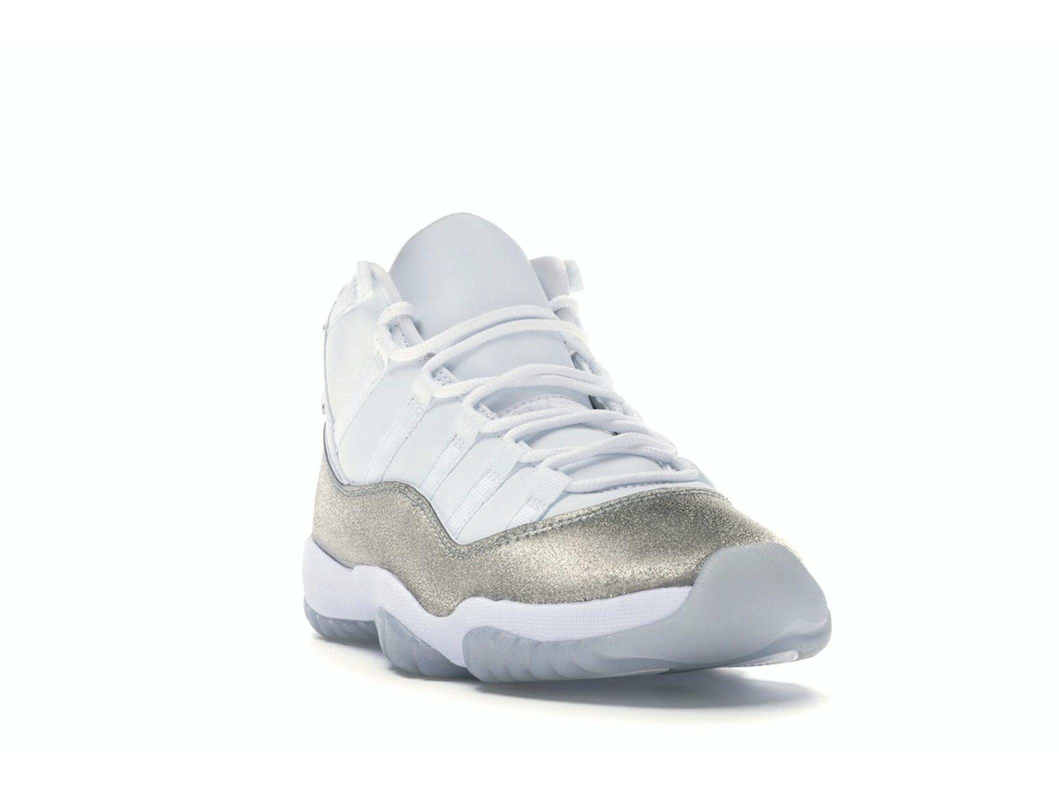 The Air Jordan 11 Retro Low Concord’s design is a masterclass in minimalist elegance. The three primary colours – white, black, and concord – work together seamlessly to create a visually stunning shoe. The signature concord hue is subtly incorporated into the herringbone pattern pods on the outsole, adding a touch of vibrancy without overpowering the overall design. The full-length Air unit in the Phylon midsole ensures superior cushioning and all-day comfort, making these sneakers ideal for both casual outings and more active days.
