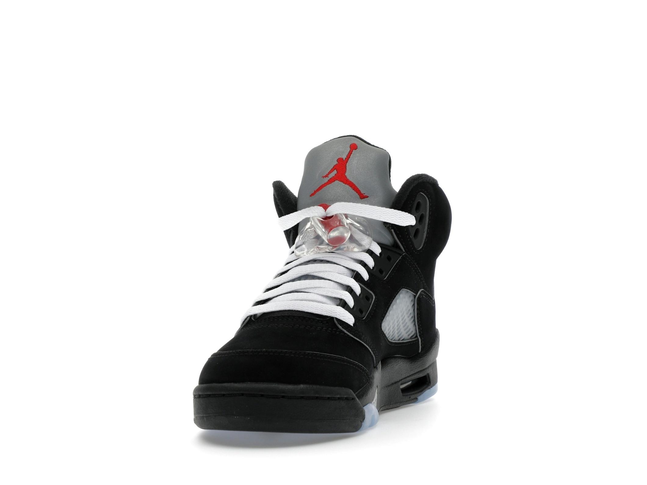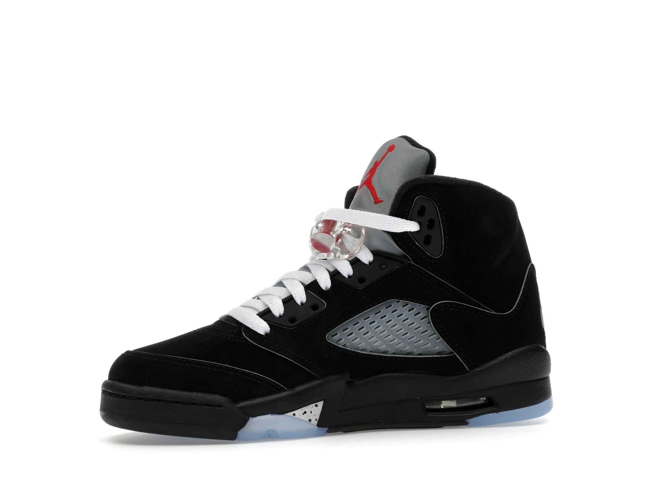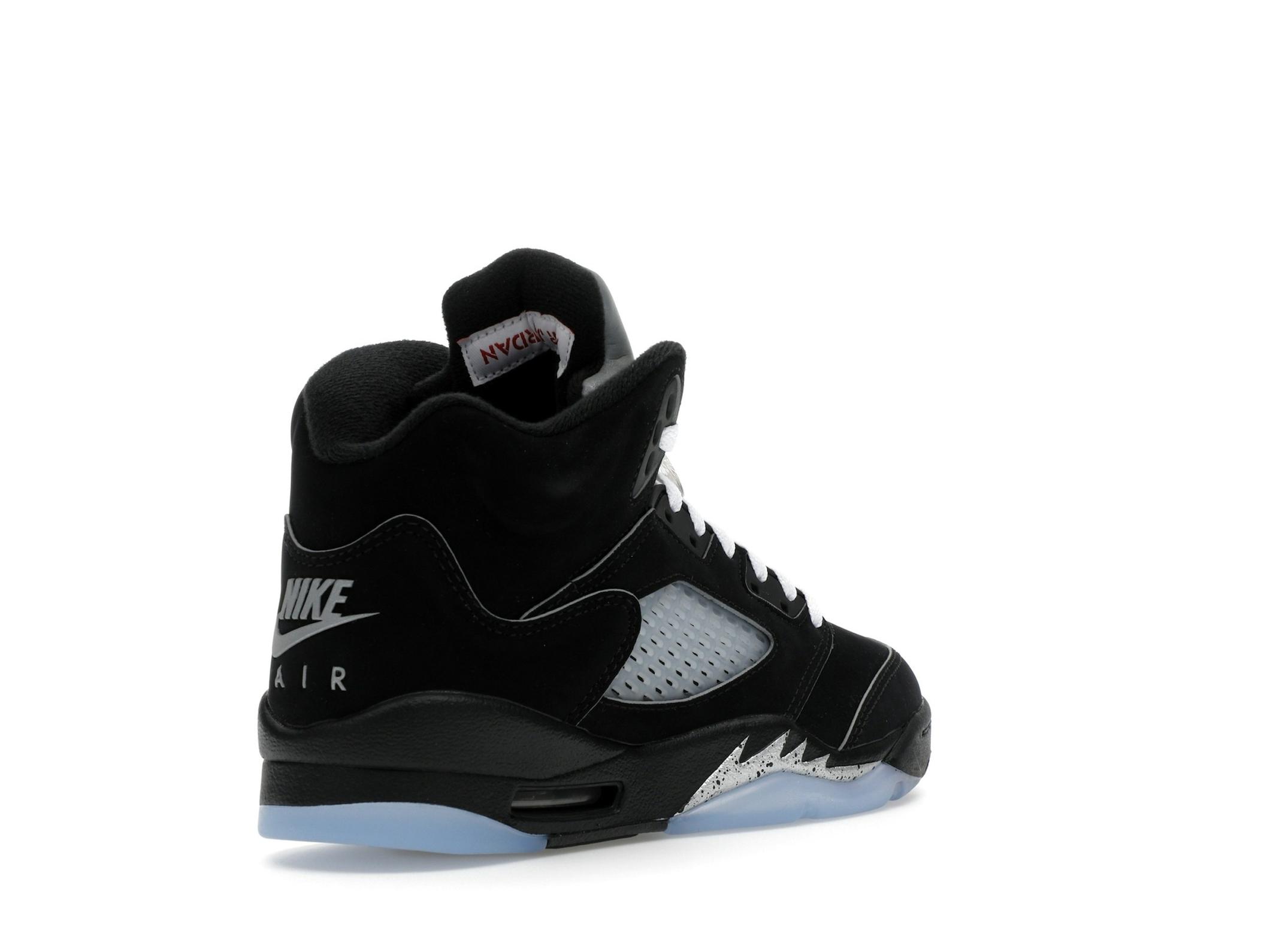 The Jordan 5 Retro OG Black Metallic Reimagined GS offers a classic sneaker experience for the next generation. A reimagining of the iconic 1990 release, these sneakers capture the timeless style and performance that made the Jordan 5 a legend. The Black Metallic colorway, a staple in sneaker history, is faithfully recreated with updated refinements for modern wear. Crafted with a premium black nubuck upper, the Jordan 5 Retro OG Black Metallic Reimagined GS provides a sleek and durable foundation. The reflective metallic silver tongue adds a striking visual element, ensuring you stand out. Bold fire red Jumpman branding provides a pop of color and iconic brand recognition. Designed for both style and comfort, these sneakers feature signature Jordan 5 details, including the aggressive metallic silver shark teeth detailing on the midsole and translucent netting. A visible Air unit in the heel provides responsive cushioning for all-day wear. The 3M reflective tongue enhances visibility in low-light conditions. Paying homage to the original design, the Air branding on the heel and the upside-down Air Jordan text on the tongue provide a nostalgic touch. These Jordan 5 Retro GS sneakers are perfect for kids who appreciate classic style and modern comfort.