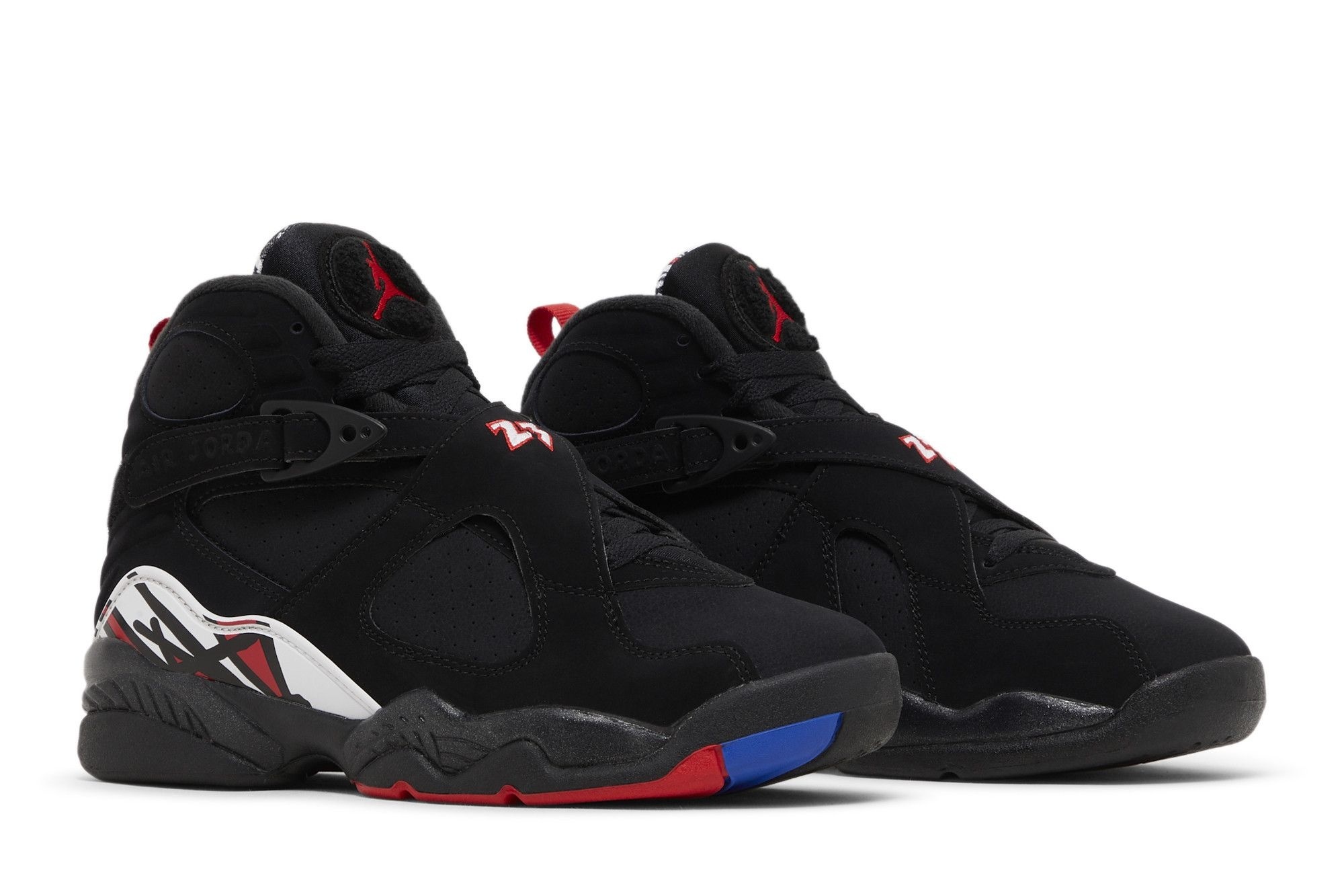 A standout detail is the striking black and red brush stroke pattern on the liner and collar, adding a unique and stylish element to this already impressive design. Originally released on September 30th, 2023, these Air Jordan 8 Retro Playoffs (GS) sneakers represent a perfect blend of classic style and modern comfort. Own a piece of basketball history with these limited-edition kicks.
