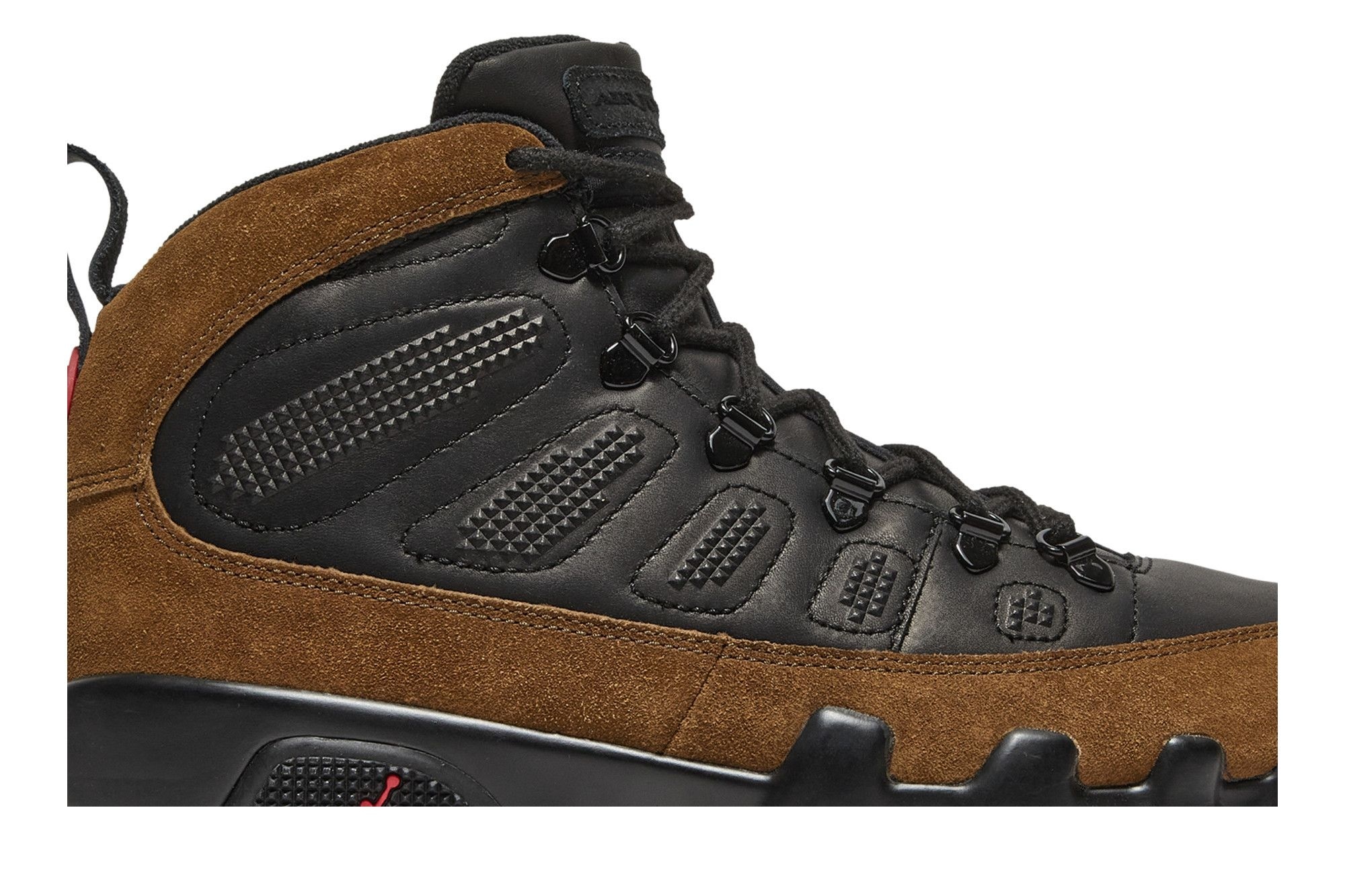 A standout feature is the contrasting teal mudguard with its refined contrast stitching, offering a pop of colour against the black leather base. The teal sock liner provides a comfortable and stylish finish. These Air Jordan 9s seamlessly blend comfort and style, making them perfect for everyday wear or special occasions.