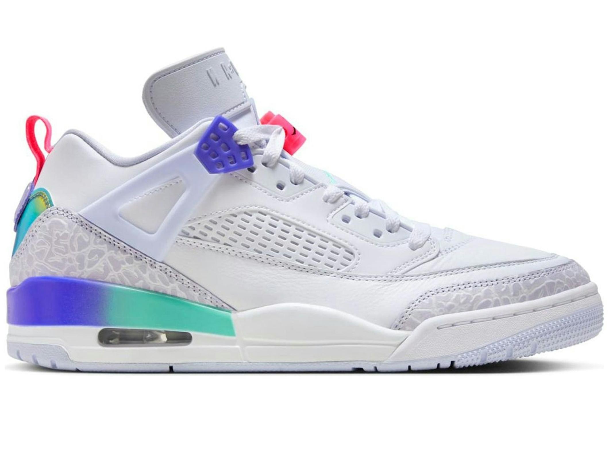 Step onto the court and into the streets with the Jordan Spizike Low “Dongdan,” a striking sneaker that blends iconic Jordan elements with a unique design. This White/Indigo Burst/Palest Purple colorway (HF5758-151) offers a fresh take on a classic silhouette, making it a must-have for sneaker enthusiasts and Jordan fans alike.