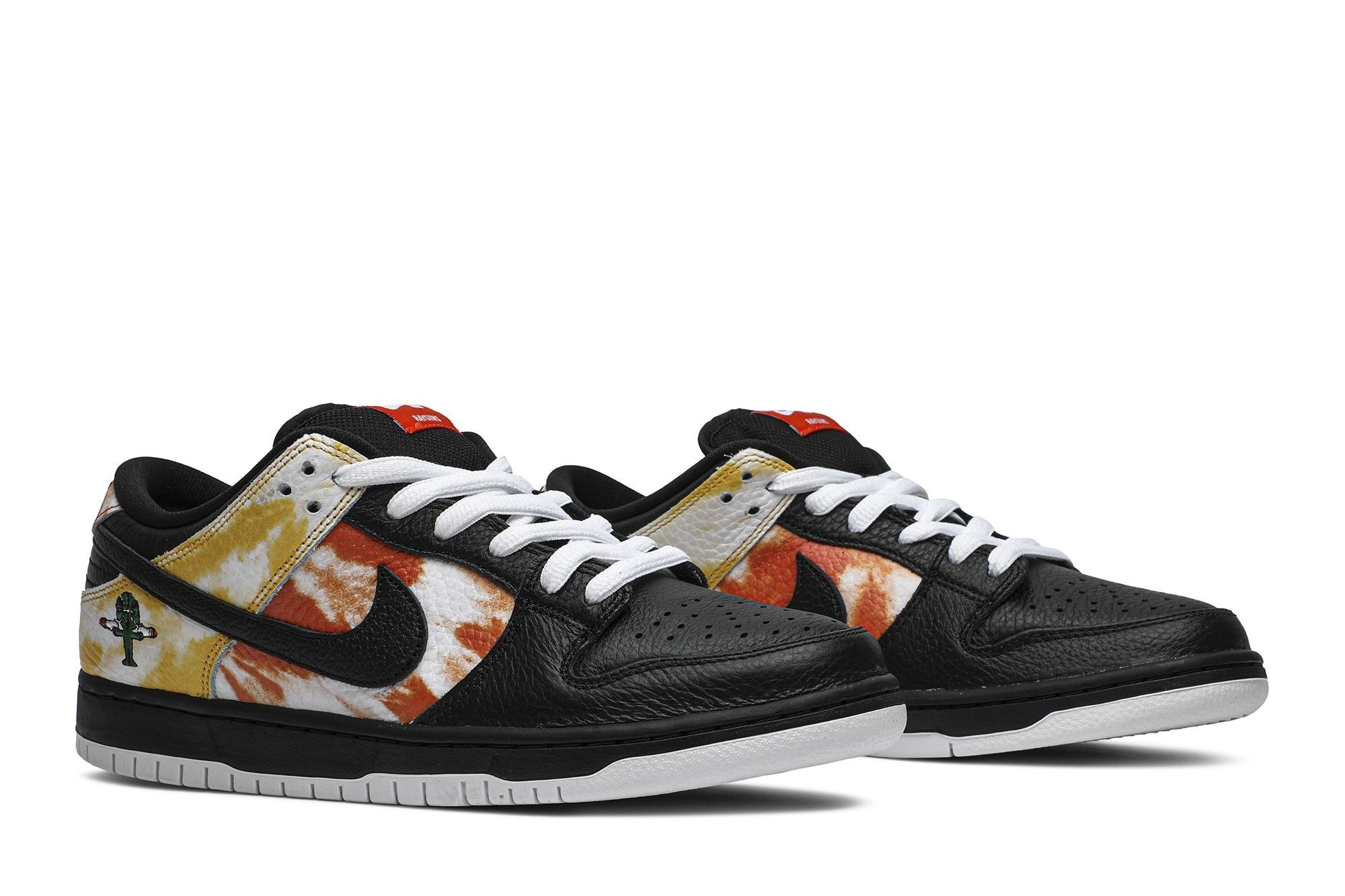 Step into intergalactic style with the SB Dunk Low Raygun Tie-Dye Black sneakers. These limited-edition kicks boast a unique blend of classic skate shoe design and vibrant, psychedelic flair. The predominantly black leather upper provides a sleek backdrop for the eye-catching tie-dye accents, adding a touch of unexpected colour and energy.
