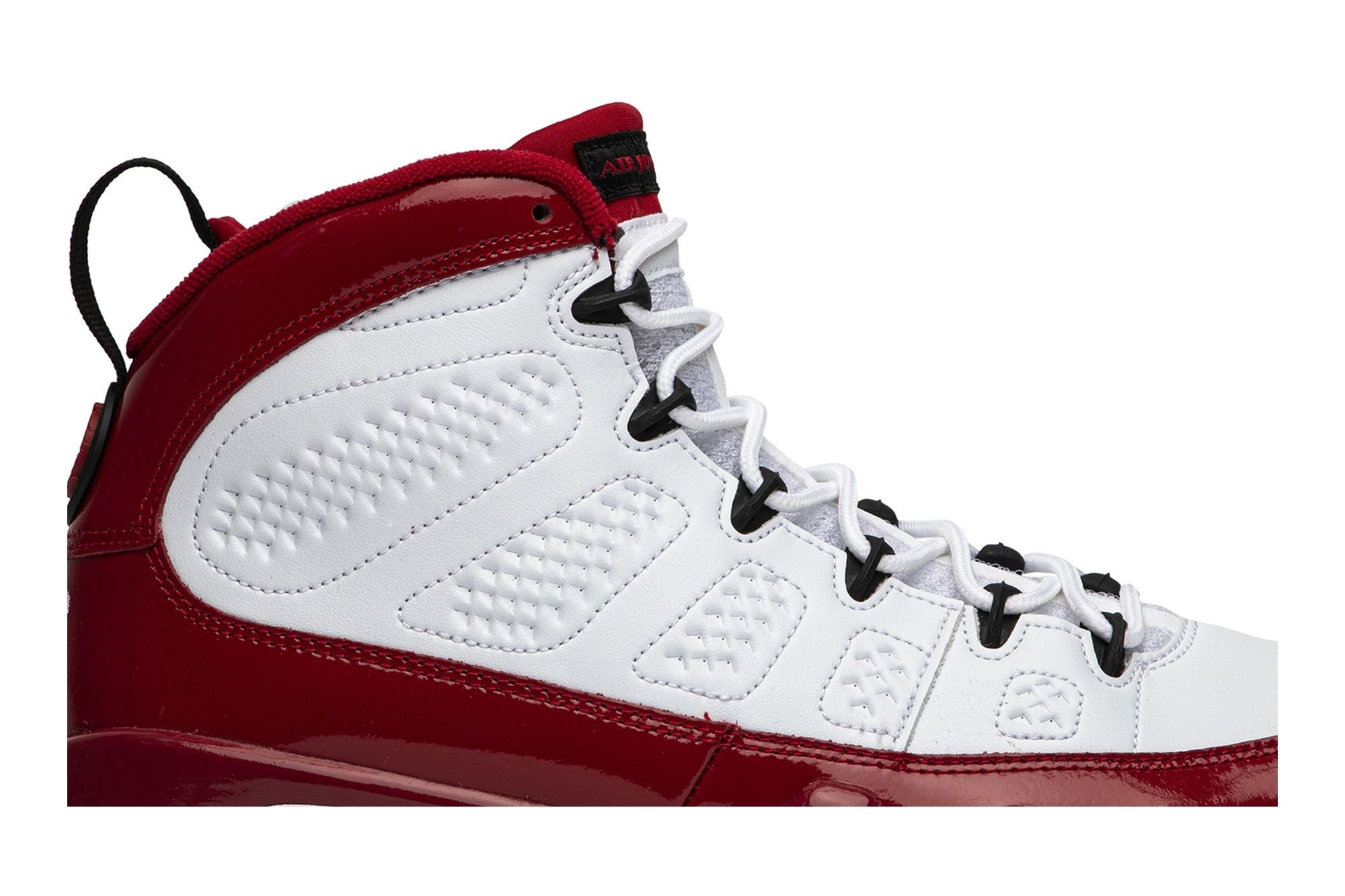 Air Jordan 9 Retro White Gym Red (302370-160). Classic white leather with gym red accents. Premium comfort & support with Air-Sole unit. Iconic Jumpman design. Originally released October 5th, 2019.